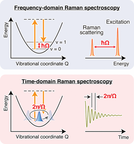 图 1.频域和时域拉曼光谱示意图。
