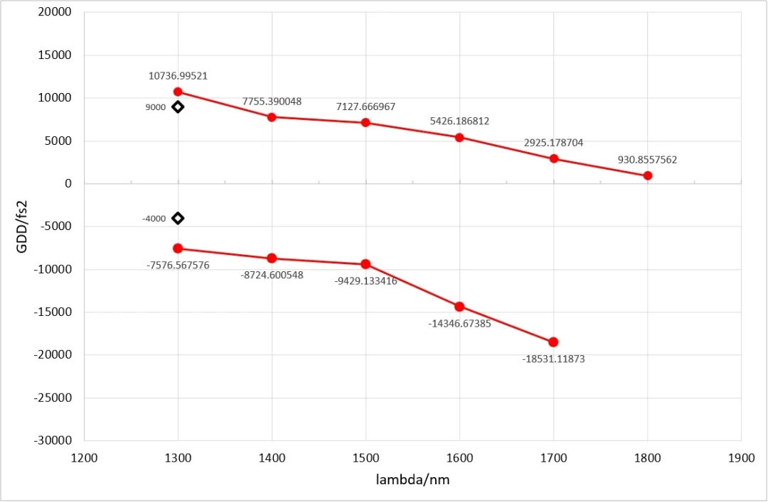 | 输出光斑@1300nm(压缩器出口500mm) | GDD范围 |