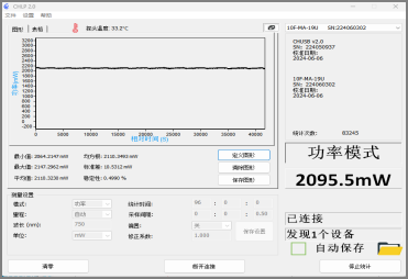 HELIOS-20W-HP(50kHz/400μJ)泵浦的OPA输出功率稳定性@13.5h,RMS=0.4990%@750nm |
