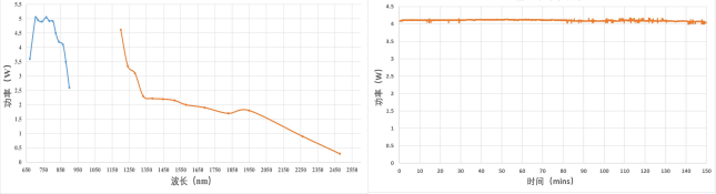 (850-900nm和1200-1300nm波段的输出功率仅供 参考。) 其中30-80分钟的RMS =0.16% ,功率曲线的毛刺 由激光器光斑指向抖动导致。