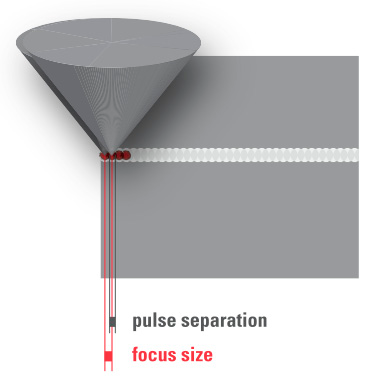 最初在眼科成功使用的短脉冲激光是Q开关Nd:YAG固态激光器,其脉冲持续时间为几纳秒。随后,飞秒(fs)激光器作为固态激光技术的最新进展,以小于1皮秒的脉冲持续时间运行。由于在飞秒脉冲持续时间范围内诱导组织的光学击穿阈值比10纳秒时低两个数量级,因此可以应用更低的脉冲能量来分离组织。然后,利用三维光束扫描系统将许多脉冲彼此靠近,利用从15 kHz到甚至MHz的高脉冲频率在组织内创建连续的切割平面。[16]