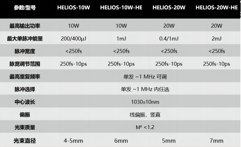 图18 HELIOS系列激光器参数表