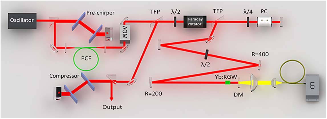 Yb:KGW固体飞秒激光放大器原理图[15]