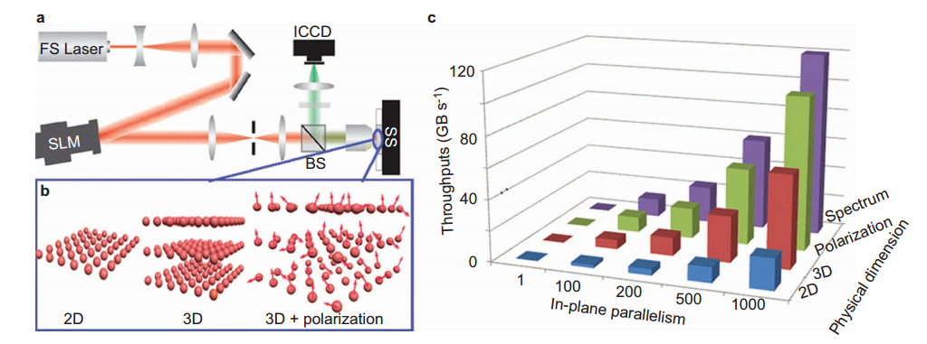 (A)使用SLM的并行光学记录方案。