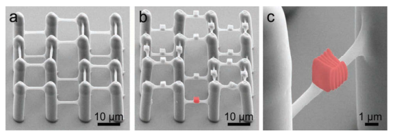 图12:用DLW三维制造聚合物复合材料支架的SEM图片。(a)含PEG