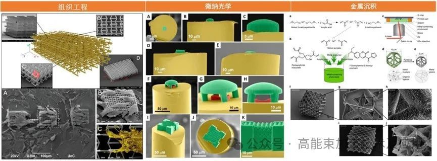 图1.组织工程和细胞生物学应用的光学微和纳米制造技术示意图。子弹点描述了这些技术在制造支架时所提供的优势。