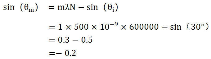 已知参数: · 光栅密度N=600线/mm · 入射角θi=30° · 衍射级次m=1 · 波长λ=500nm |