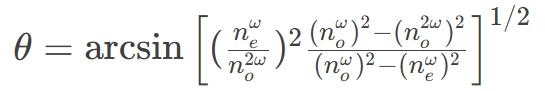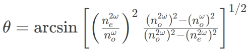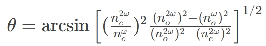 相位匹配角计算公式1. 负单轴晶体第一类相位匹配(O+O→E) |