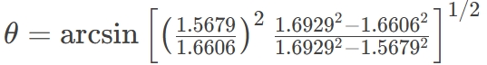 第三步:计算相位匹配角θ 使用负单轴晶体I类相位匹配公式: ![]() 代入数值: ![]() 分步计算: 1. 计算(ne₂/no₁)²: ![]() |