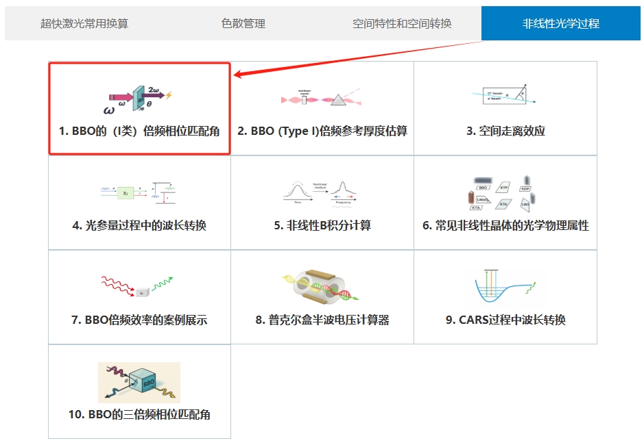 1.选择晶体类型(BBO、KDP等)和匹配模式