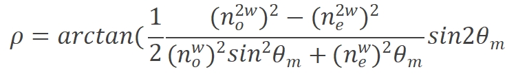 我们以800nm激光在BBO晶体中的I类相位匹配(O+O→E)为例,计算其走离角。需要以下参数: