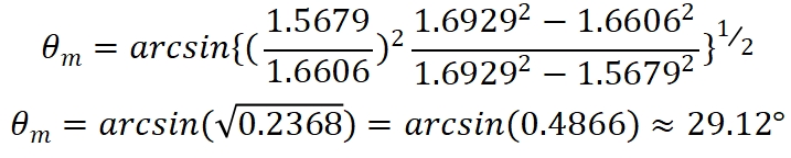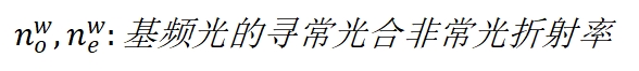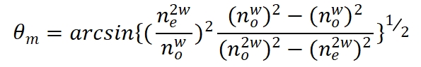 | 相位匹配角计算 使用负单轴晶体相位匹配公式: ![]() |