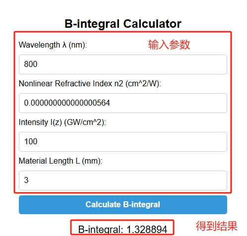 B积分是评估激光非线性效应的重要工具,广泛应用于高功率激光系统设计、非线性频率转换和超快光学研究。通过在线计算器,工程师和研究人员可以快速估算B积分,优化光学系统参数,避免非线性效应带来的不利影响。
