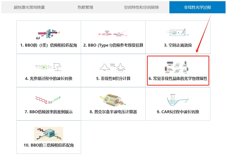 选择想要了解的非线性晶体光学物理属性的详细描述,点击查看。