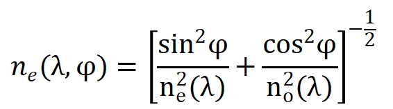 有效非常光折射率:φ为晶体切割角(光轴相对晶面法线的角度)![]() |