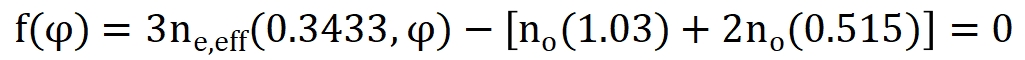 通过数值方法(如二分法)寻找φ∈[0°,90°]使得相位匹配公式成立:
