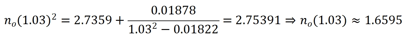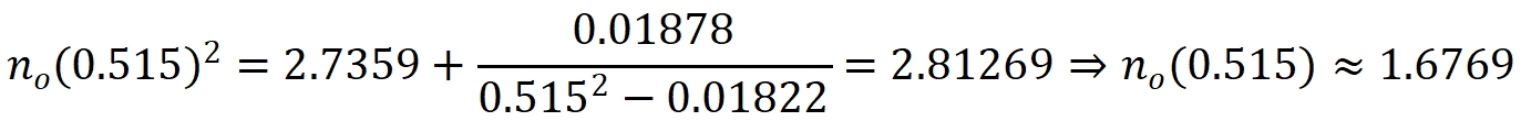 根据Sellmeier方程计算no(1.03),no(0.515),ne(0.3433)。