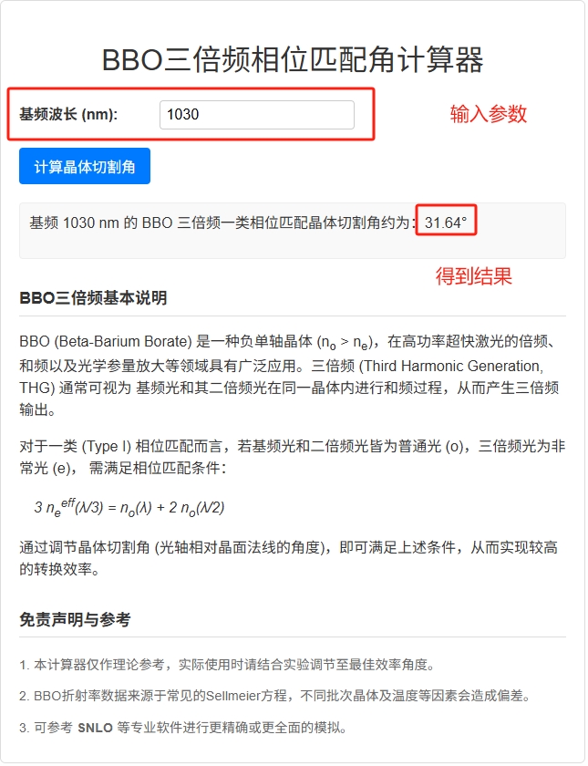 在网页输入框中填写基频波长(单位:nm),如1030nm。