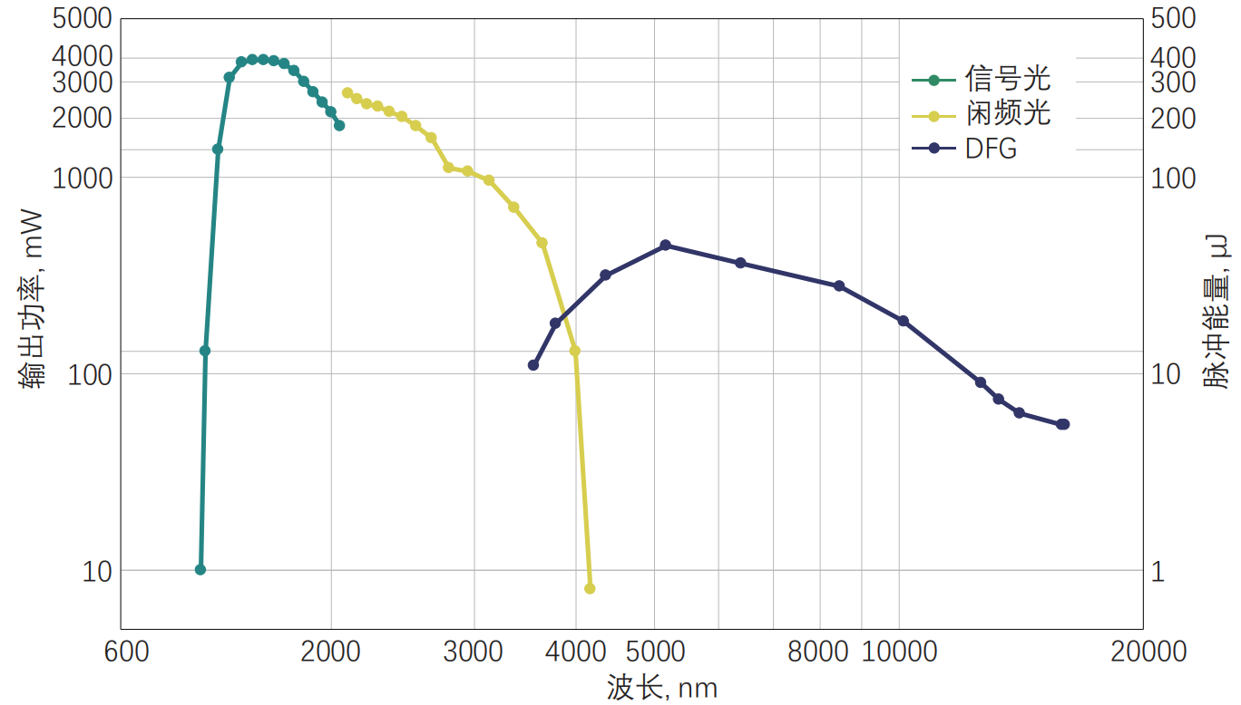 | 调谐范围 | 4500 - 16000 nm(DFG) | |