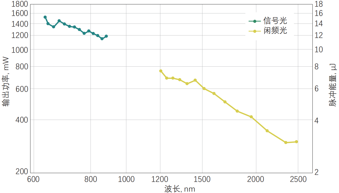 | 调谐范围 | 650 – 900 nm (信号光) 1200 – 2500 nm (闲频光) |