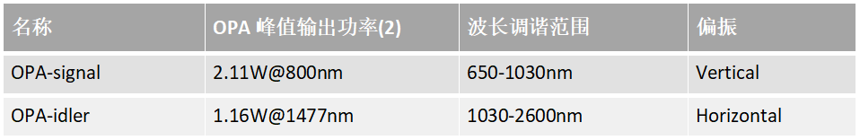 HELIOS-20W-HP 激光器结合光学参量放大器(OPA),提供从 650 nm 到 2600 nm 的超宽波长调谐范围,涵盖紫外、可见光、近红外和中红外波段,适应多学科研究需求。系统在关键波段(700 nm - 950 nm 和 1300 nm - 1900 nm)具备高功率输出,信号光峰值达 2200 mW,闲频光峰值达 1400 mW,同时具有卓越的功率稳定性和脉冲宽度,稳定提供百fs量级的时间分辨,为长时间实验提供可靠支持。