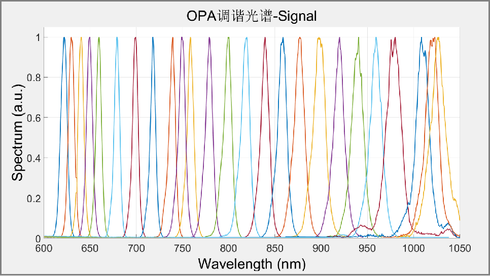 HELIOS-20W-HP(50kHz/400μJ)泵浦的OPA(AURORA-HP)输出信号光光谱 |