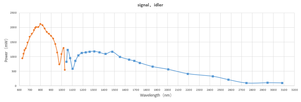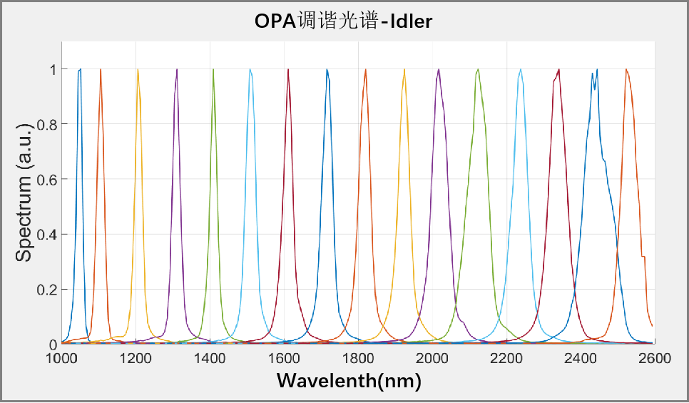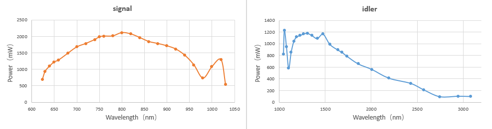 HELIOS-20W-HP(50kHz/400μJ)泵浦的OPA(AURORA-HP)闲频光光谱 |
