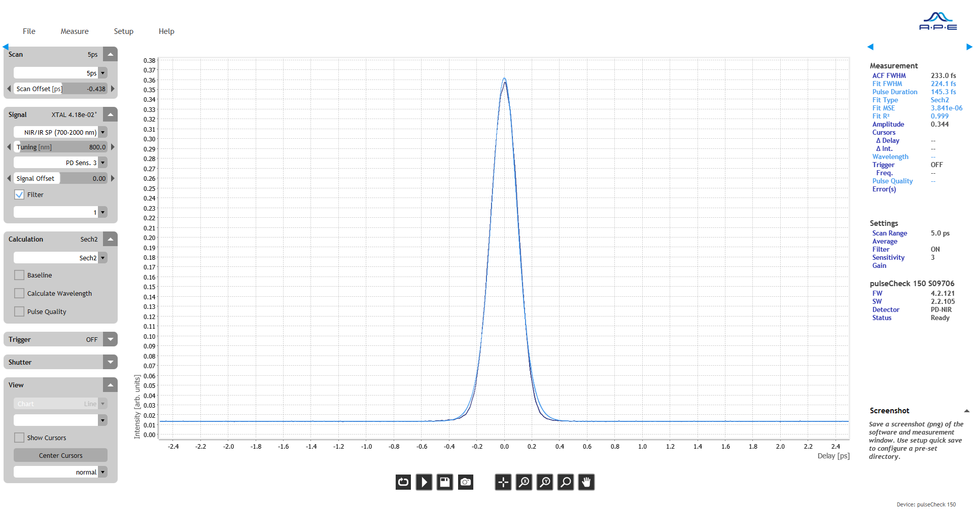 HELIOS-20W-HP(50kHz/400μJ)出厂脉宽测试,脉宽=232.9fs |