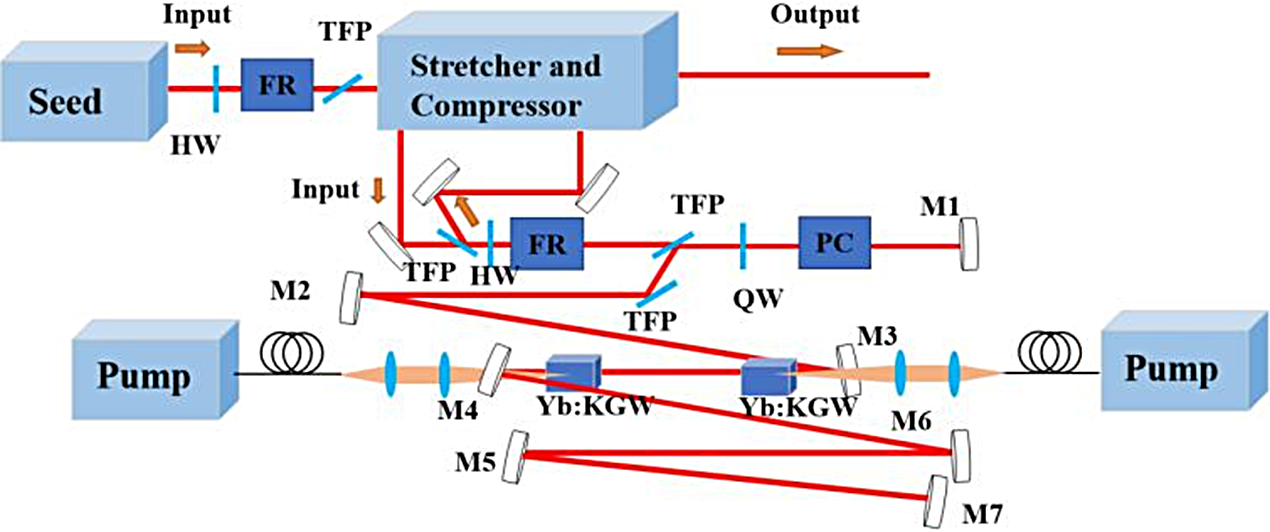 板条飞秒激光器通常也是采用行波放大(Regenerative Amplification)方式。在这种方式中,脉冲在增益介质中反复往返,每次通过都得到增强。