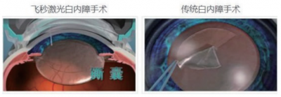 图7 飞秒激光撕囊和传统的手工撕囊的比较