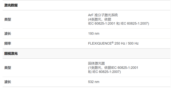 图16蔡司MEL 90 准分子激光系统激光参数