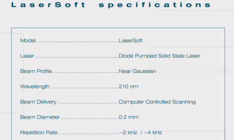 屈光视力矫正手术治疗机LaserSoft,使用紧凑设计并且可产生紫外飞秒脉冲和基本纳秒脉冲。与目前市场上飞秒系统中使用的Nd:galss相比,LaserSoft 中使用的激光材料(钛蓝宝石)具有更高的脉冲与背景功率比;更小的波长,从而导致更有效的(多光子诱导)蒸发;由于钛蓝宝石的带宽较宽,因此可以产生更短的脉冲(大约100 fs),从而实现更有效的蒸发;