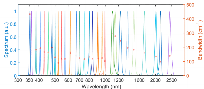 图19镱镭AURORA系列全波长自动调谐光参量放大器和典型光谱调谐范围