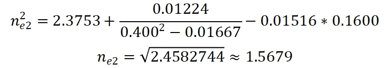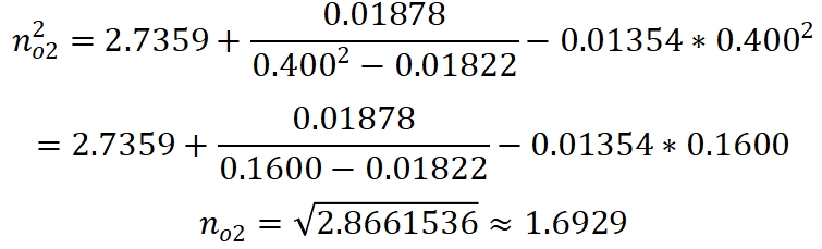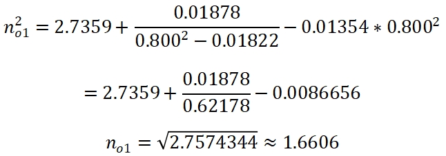将波长0.800μm代入BBO寻常光的折射率方程: