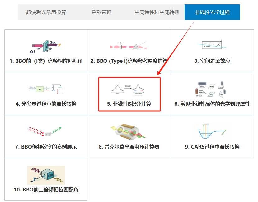 B积分是评估激光非线性效应的重要工具,广泛应用于高功率激光系统设计、非线性频率转换和超快光学研究。通过在线计算器,工程师和研究人员可以快速估算B积分,优化光学系统参数,避免非线性效应带来的不利影响。