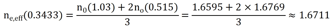 根据Sellmeier方程计算no(1.03),no(0.515),ne(0.3433)。