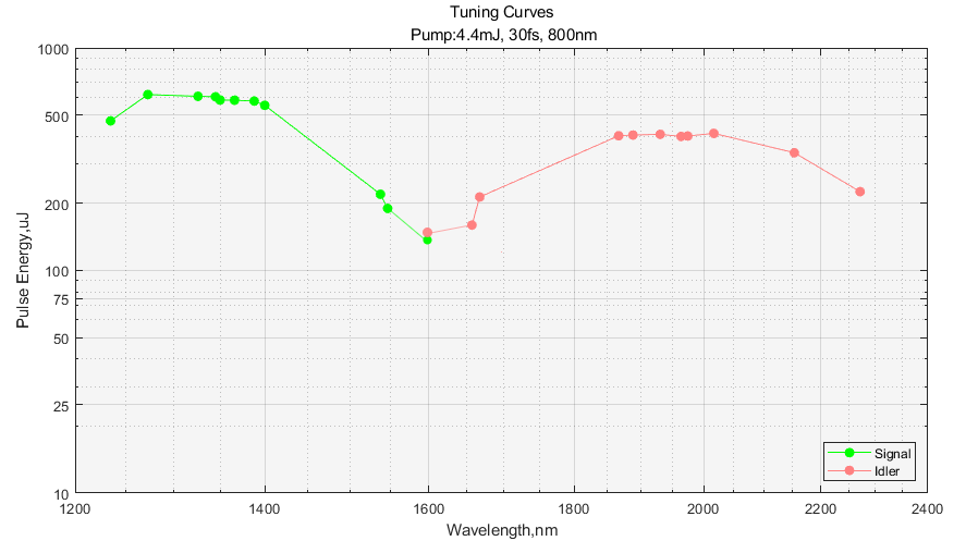 1200-1600nm (signal) 1600– 2400nm (idler) |